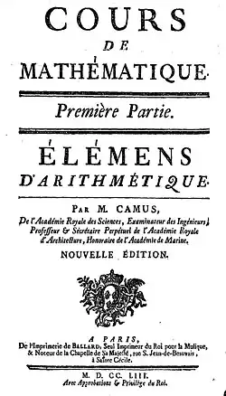 2. ^ One or more of the preceding sentences incorporates text from a publication now in the public domainChisholm, Hugh, ed. (1911). "Camus, Charles Étienne Louis". Encyclopædia Britannica. Vol. 5 (11th ed.). Cambridge University Press. p. 140.