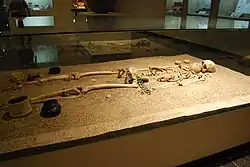 Maya pottery types began to be included in elite burials, although utilitarian ceramics retained traditional patterns.[13] This has suggested to some researchers, that the Maya culture to the east exerted influence or even control over Chiapa de Corzo, although there seems to be a waning of that Maya influence in the first centuries CE.[14] It was during this time that the ancient platform mounds were covered with limestone and stucco.