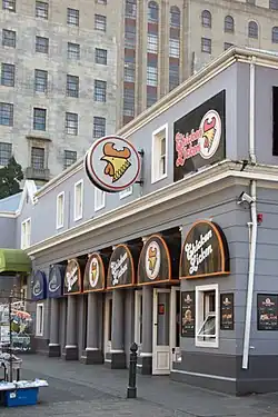 Chicken Licken was founded in South Africa by George Sombonos, the son of a Greek immigrant restaurant owner.[6][9][10] Sombonos learned the restaurant trade in the 1970s at the Dairy Den, his father's restaurant in Ridgeway, a suburb in the southern Inner City region of Johannesburg.[11][12] KFC entered the South African market in 1971.[13] Sombonos bought Chicken Licken's secret fried chicken recipe from the owner of a fast food outlet in Waco, Texas, for US $1,000 while touring the United States in 1972 and introduced it to the Dairy Den.[11][12][14] In 1975 he started serving black customers in their cars when apartheid segregation laws restricted their access to restaurants.[11][15] In 1976 he introduced the drive-through restaurant concept to the Dairy Den after seeing it at Wendy's restaurants in the United States.[11]