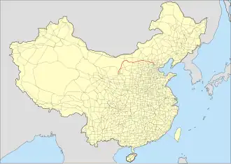 China National Highway 110 (G110) runs from Beijing to Qingtongxia, via Hohhot, Baotou in Inner Mongolia, and Yinchuan. It heads northwest from Beijing to Zhangjiakou then heads straight west, and runs to approximately 1,100 kilometers (680 mi).