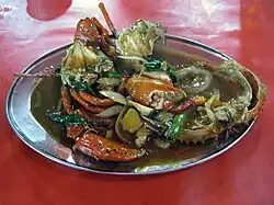 Chinese culinary culture is particularly evident in Indonesian cuisine through the Hokkien, Hakka, and Cantonese loanwords used for various dishes.[3] Words beginning with bak () signify the presence of meat, e.g. bakpau ("meat bun"); words ending with cai () signify vegetables, e.g. pecai ("Chinese white cabbage") and cap cai ("mixed vegetables").[4] Also mi or mie () signify noodle as in mie goreng ("fried noodle").