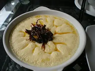 ![]() Chinese steamed egg topped with broth and other ingredients | |