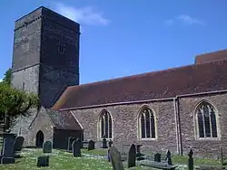 The church has a Norman doorway with columns five feet high. The axis of the chancel is set in a more southerly direction to that of the nave. In the churchyard is the grave of Captain William Howe, skipper of the packet "Welsh Prince", which is portrayed in a carving at the head of his tombstone.[1]