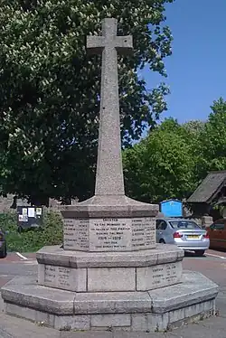 Christchurch has a War Memorial, to combatants of World War I and World War II, directly in front of the church, and a public house, The Greyhound Inn, opposite.