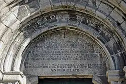 Close-up of the 17th–18th century inscription copied from the original medieval parchment and dating the Church to 559 A.D.