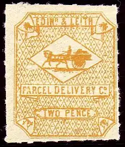 A 2d stamp of the Edinburgh & Leith Parcel Delivery Company.
