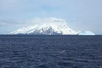 Clarence Island seen from the north, with Cape Lloyd and Jubilee Peak in the foreground
