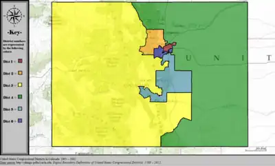 Table of United States congressional district boundary maps in the state of Colorado, presented chronologically.[7] All redistricting events that took place in Colorado between 1973 and 2013 are shown.