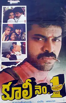 Coolie No. 1 is a 1991 Indian Telugu-language romantic action film produced by D. Suresh Babu under the Suresh Productions banner and directed by K. Raghavendra Rao. It starred Venkatesh and Tabu, the latter making her first movie as an actress. Rao Gopal Rao, Sharada, Kota Srinivasa Rao, Paruchuri Venkateswara Rao, Mohan Babu, and Brahmanandam playing supporting roles. The music was composed by Ilaiyaraaja with cinematography by S. Gopal Reddy and editing by K. A. Martand.[2] The film was dubbed into Tamil under the same title and in Hindi as Coolie Raja.