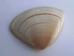 Crassula aequilatera, known as the triangle shell, is a surf clam, a moderately large marine bivalve mollusc in the family Mactridae. [1]