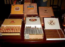Cuban cigar brands and brand names are among the most recognized and prestigious in the world.[19] Among them are Cohiba, Montecristo, Partagás, H. Upmann, La Gloria Cubana, Hoyo de Monterrey, Punch, and Romeo y Julieta. Due to an embargo on the import of Cuban cigars by the United States in 1960, difficulties with maintaining the integrity of these brand names arose. The U.S. refused to recognize Cuban ownership of applicable trademarks, resulting in manufacture and sale by companies in the U.S. and other nations (such as the Dominican Republic, Nicaragua, Honduras, and elsewhere) completely unrelated to the Cuban industry, as well as large scale counterfeiting impersonating the more valuable authentic Cuban products.[20]