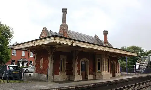 The original station building (no longer in railway use) is in the Tudor Revival architecture of Isambard Kingdom Brunel[1] and is a Grade II* listed building.