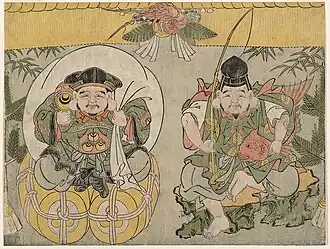 18th century ukiyo-e depicting Daikokuten (left) and Ebisu (right)