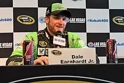 Earnhardt's success at Daytona International Speedway and Talladega Superspeedway throughout his career earned him the nickname "the Pied Piper".[5] He is a two-time Daytona 500 winner (2004 and 2014), and won NASCAR's Most Popular Driver Award fifteen consecutive times from 2003 to 2017.[6]