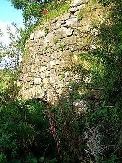 The Craig Mill ruins from below Linn Spout. This mill was associated with Kilwinning Abbey, together with Garnock and Sevenacres mills.[17]