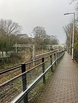 The accessible ramp down to the Cardiff-bound platform from Llantrisant Road