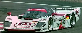 Arriving at Le Mans with the support of Porsche's factory racing team, Joest Racing,[8] Dauer's two cars showed that they lacked the overall pace of the top Group C cars by qualifying fifth and seventh. However, their pace in their class was shattering as the next closest GT1-class car could only muster 12th. The race saw Porsche's plan pan out, as the Dauer 962 Le Mans were able to gradually make their way to the top of the standings while their competitors spent time in the pits or succumbed to mechanical woes. In the end, only a lone Toyota 94C-V in the Group C class could contend with the Dauers, taking second place overall. The Dauer 962 Le Mans of Yannick Dalmas, Hurley Haywood and Mauro Baldi would take the overall win, while the second team car would finish one lap behind in third place overall.[8]
