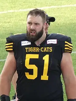 In 2019, he was the unanimous selection for the Edmonton Eskimos' Most Outstanding Offensive Lineman.[5] He re-signed with Edmonton on a contract extension through 2023 on December 26, 2020.[6] He played in 94 games for Edmonton over seven seasons.