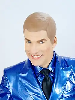 Born in Indianapolis, David Traylor found success in the late 1970s performing "Zed", a humanoid robot. His performance of Mr. Zed included mime work, such as shuffling his feet, moving his forearms rhythmically, and mechanically rotating his head.[1] In 1980, he performed as a singer at the Sanremo Music Festival with the song "R.O.B.O.T.", which became a major hit.[2] In the mid-1990s, he was the author and host of the television show Mr. Zed Show, which was broadcast throughout the Middle East, North Africa and Northern Europe through the Orbit Satellite television network. The Mister Zed Show was the first program of its kind to be shot entirely on digital video.[3] The series featured a revised version of his Mister Zed character as a comedic figure, portrayed as the first-ever robotic stand-up comedian; in this context, he made numerous appearances on US and Canadian television programs and comedy festivals.