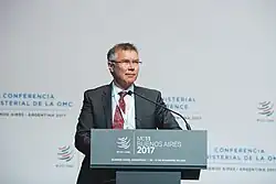As Minister of Economic Development, Parker addresses the WTO Ministerial Conference, 11 December 2017