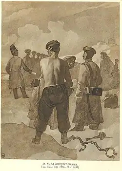 Peter Alekseevich Kropotkin described the traditions that prevailed in the mid 19th century in the most privileged military educational institution of the Russian Empire, the Page Corps. The older students, the chamberlains, "gathered the newcomers in one room at night and drove them around in their nightgowns like horses in a circus. Some cellmates stood in the circle, others outside it, and mercilessly whipped the boys with leather whips."[11][12]