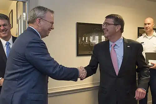 Eric Schmidt and Defense Secretary Ash Carter meet