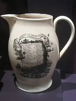 English transfer-printed Staffordshire pottery jug with US population by state, c. 1790