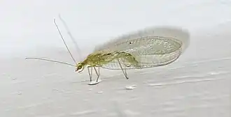 The agriculture industry has been trying to find biological and natural ways to eliminate the diamondback moth especially since the moths have become resistant to pesticides. Common enemies of the moth include the parasitoids Trichogramma chilonis and Cotesia plutella and the predator Chrysoperla carnea, a lacewing. Lacewings feed on eggs and young larvae, while the parasitoids attack the eggs. These organisms can recognize diamondback sex pheromones, larval frass odors, and green leaf volatiles emitted from cabbage. Cabbage odors in combination with the sex pheromone are particularly capable of attracting the predators and parasitoids, which will then consume the diamondback larvae and eggs.[14]
