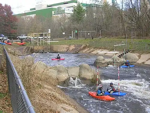 The Dickerson Whitewater Course, on the Potomac River near Dickerson, Maryland, was built for use by canoe and kayak paddlers training for the 1992 Olympic Games in Spain. It was the first pump-powered artificial whitewater course built in North America, and is still the only one anywhere with heated water. It remains an active training center for whitewater slalom racing, swiftwater rescue training, and other whitewater activities.