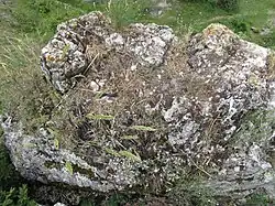 An old Eurasian eagle-owl feeding site, with whitewash remnants visible.
