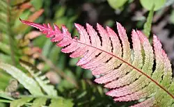 Young fronds contain flavonoids that protect them from ultraviolet radiation and give them a pink colour.[2]
