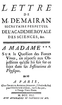 Sur la question des forces vives, 1741