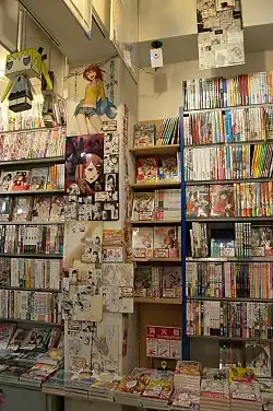A doujin shop (同人ショップ, dōjin shoppu) is a store that specializes in doujinshi, self-published works. They exist mainly in Japan. Doujin shops can be both brick and mortar as well as online stores.[1] Some sell only second-hand doujinshi, but particularly larger chain stores also sell new doujinshi. Many doujin shops also handle other kinds of doujin works, such as doujin music or doujin games,[2] or commercially published popular media such as manga and anime.