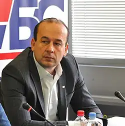 In January 2017, Velimir Ilić withdrew his support from Serbia's SNS-led administration. Jovanović, speaking as a party vice-president, said that Ilić was entitled to his personal opinions but that the party as a whole would continue to support the government.[32] Ilić then expelled Jovanović from the party, claiming that he had disobeyed the decisions of the party leadership, had made false claims about a diploma, and was compromised because of his involvement in a 2012 car accident. Jovanović rejected these accusations and said that Ilić was really concerned about a possible leadership challenge.[33][34][35]