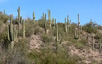 The Sonoran Desert landscape shows the heavy dispersal of host cacti.