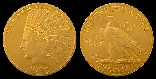 The eagle is a United States $10 gold coin issued by the United States Mint from 1795 to 1933.