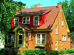 - The Charles and Rachel Neuman house at 7208 Elmwood Ave. is a 1+1⁄2-story house in Dutch Colonial Revival style built in 1937, with a small pediment over the front door, and a flat-roofed sun porch on one end. The identifying characteristic of this style is the gambrel roof.[3][7]