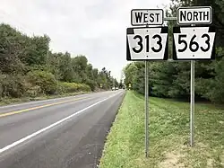 PA 313 westbound and PA 563 northbound in East Rockhill Township
