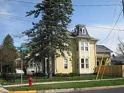 • The Bjoin house at 1001 E. Main Street is a 2-story Italianate-styled house built in the 1880s. The main block is clad in clapboard, with a wide frieze-board and brackets supporting the eaves. Above is a hipped roof with a central deck. A 3-story bay on the west side rises to a tower with a mansard roof. The front porch spans most of the north side, decorated with spindlework and an elaborate cut-out frieze.[3][4]