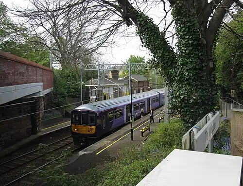 Eccleston Park railway station serves the Eccleston Park area of Prescot, Merseyside, England. It is situated on the electrified Merseytravel Liverpool to Wigan City Line, 8+34 miles (14.1 km) northeast of Liverpool Lime Street. The station, and all trains serving it, are operated by Northern Trains, however the station is branded Merseytravel using Merseytravel ticketing. It was opened by the London & North Western Railway in July 1891.