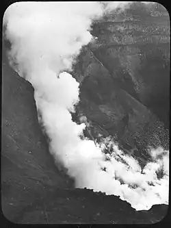 One of his most significant voyages was to study the aftermath of the Mount Pelee and La Soufriere eruptions in 1902.[4] Hovey travelled to the Caribbean in the immediate aftermath of the eruptions, on the USS Dixie. The party included geologists Thomas Jaggar, Israel Russell, Angelo Heilprin and Robert T. Hill, geographer George Carroll Curtis and Norwegian explorer Carsten Borchgrevink.[5][6][7] In the Caribbean, Hovey also met up with British photographer and volcanophile, Tempest Anderson.