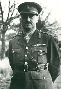 During the interwar period Flavell remained on the active list of the East Surrey Regiment, but became involved in the shipping industry with a business partner from the United States. When the Second World War broke out in September 1939, Flavell was recalled to the British Army and subsequently given command of the 2/7th Middlesex Regiment. He saw service during the Battle of France in 1940, and was then given the task of raising the 70th (Young Soldiers) Battalion.[1] On 22 June 1940, the Prime Minister, Winston Churchill, created the British airborne establishment when he directed the War Office in a memorandum to investigate the possibility of creating a corps of 5,000 parachute troops.[14] In 1941 the 1st Parachute Brigade was formed, with Brigadier Richard N. Gale, Flavell's former commanding officer, as its commander.[15] Gale selected Flavell, now a colonel,[16] to raise and then command the 2nd Parachute Battalion which would form part of the brigade.[1] His adjutant was Captain John D. Frost, who would later become famous for commanding the battalion during the Battle of Arnhem; both men qualified as parachutists in October 1941.[1][17] In January 1942 Flavell gave Frost command over Operation Biting, a raid on a radar station on the French coast near Bruneval; the raid, which took place in February, was successful and brought back vital technology.[1]