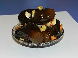 Eggplant jam (Azerbaijani: Badımcan mürəbbəsi, Turkish: Patlıcan reçeli, Arabic: مربى الباذنجان)[1][2][3] is a whole-fruit jam in Azerbaijani,[4] Turkish and Syrian cuisine. In Turkey, it is especially popular in Antalya,[5] Iğdır and Kağızman.[6] The Governorate of Iğdır Province is making efforts to obtain a geographical indication for the name "patlıcan reçeli".[7] In Syria, it's prepared in a similar way but sometimes topped with coconut flakes.