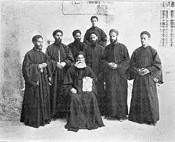 Coptic priests wearing binish coats.
