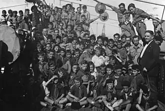 Exploradores de España. Elias Ahuja on the left in the third row, and Luis del Rosal Caro on the right