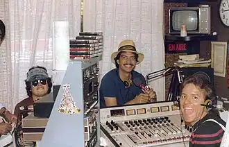 Moonshadow (right) and Yun Yun Echevarría (center)at "El Gufeo Matutino at Z-93 (1980s)