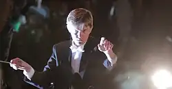 Frederik Magle conducting the orchestra in Koncerthuset at the release concert.