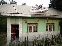 The name of a congresswoman is included in a barangay hall signage in San Ildefonso, Bulacan.