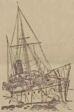 Having joined the Merchant Navy in 1888, Huddleston received his certificate as Second mate of a Foreign Going Ship on 30 May 1895.[10] He then joined the Royal Indian Marine initially serving in the Egyptian Campaign.[2] He took the Officer's course at the Royal Naval College, Greenwich[5][6] and in 1897 was in the troopship, Warren Hastings, when she was wrecked at sea off the coast of Mauritius.[6] For his role in the rescue of those on board, Huddleston was awarded the Royal Humane Society's silver medal for gallantry.[5][6]