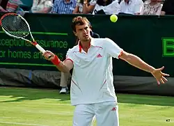 Ernests Gulbis (Latvian pronunciation: [ˈærnests ˈɡulbis], born 30 August 1988)[2] is a Latvian former professional tennis player. His career-high singles ranking is world No. 10, making him the only male Latvian tennis player ever to be ranked inside the top 10, a feat achieved in June 2014. In 2008, Gulbis won his first ATP Tour doubles title at the U.S. Men's Clay Court Championships, teaming with Rainer Schüttler, and in 2010, he won his first ATP Tour singles title in the Delray Beach, defeating Ivo Karlović in the final. In total, Gulbis has six ATP titles to his name. His best performance at a Grand Slam was reaching the semifinals of the 2014 French Open. He had previously reached the quarterfinals of the 2008 French Open.